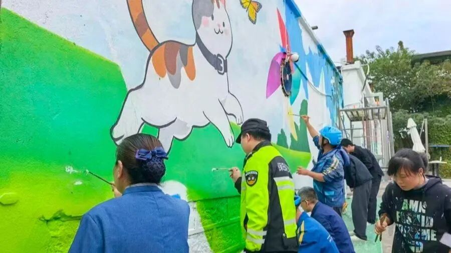 党总支还依托“街邻”工作体系,链接更多资源:发挥园区党组织书记作为心理咨询师的优势,开设“手工解压沙龙”;引入街区志愿服务队,提供理发、缝补等常态化服务;发起驿站墙面“猫站长”主题壁画共绘活动。自试点以来,园区共开展活动9场,服务超700人次。不同群体在撸猫、拼模型、涂鸦中舒缓情绪,归属感悄然生长。